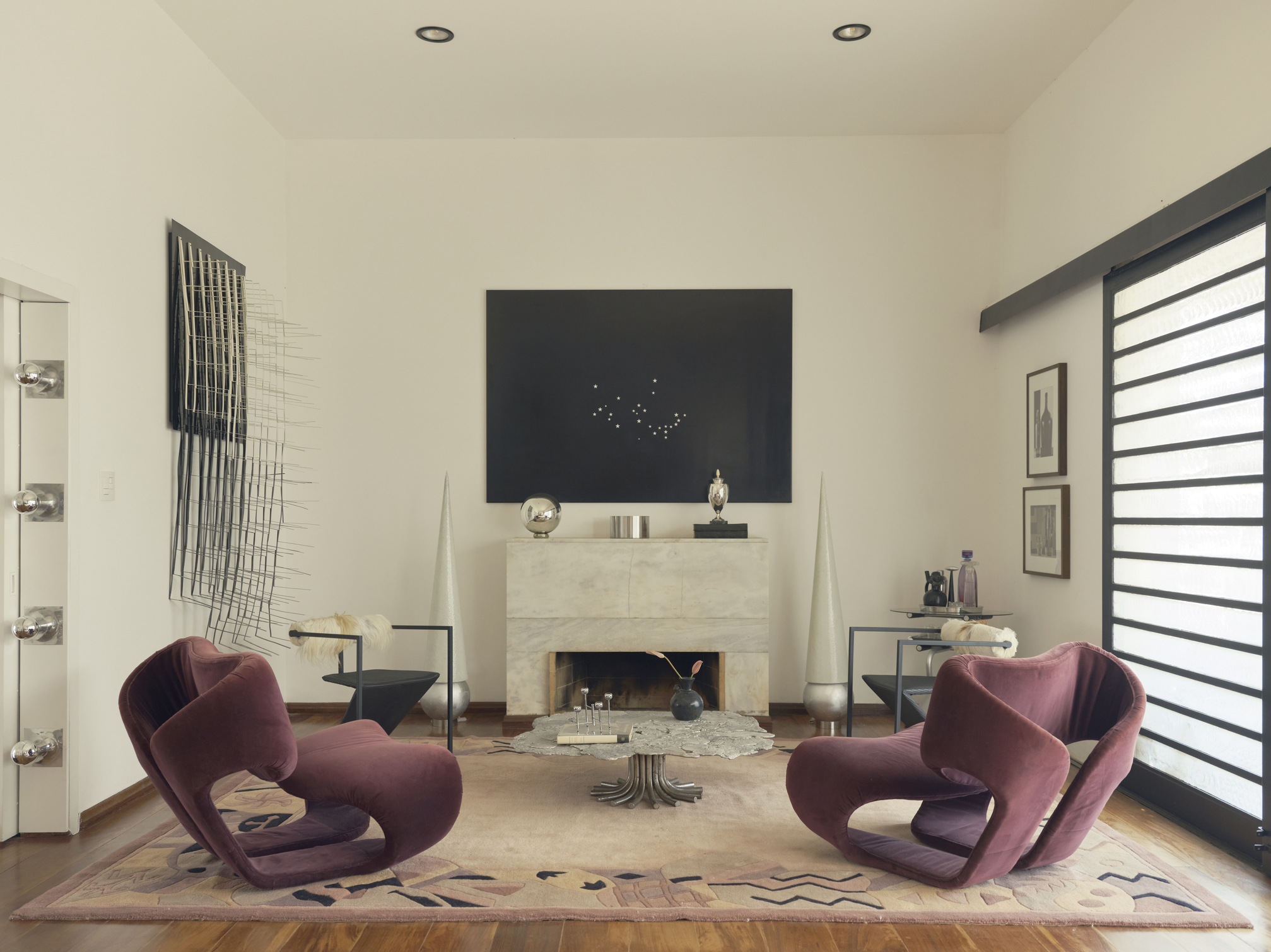 Dentre os destaques do Apartamento 61, o sofá em aço inoxidável, atribuído ao arquiteto e designer suíço Mario Botta, apresenta linhas limpas e formas geométricas, refletindo sua abordagem arquitetônica escultural e holística, em uma síntese entre a arte funcional do design e atributos da contemplação artística.