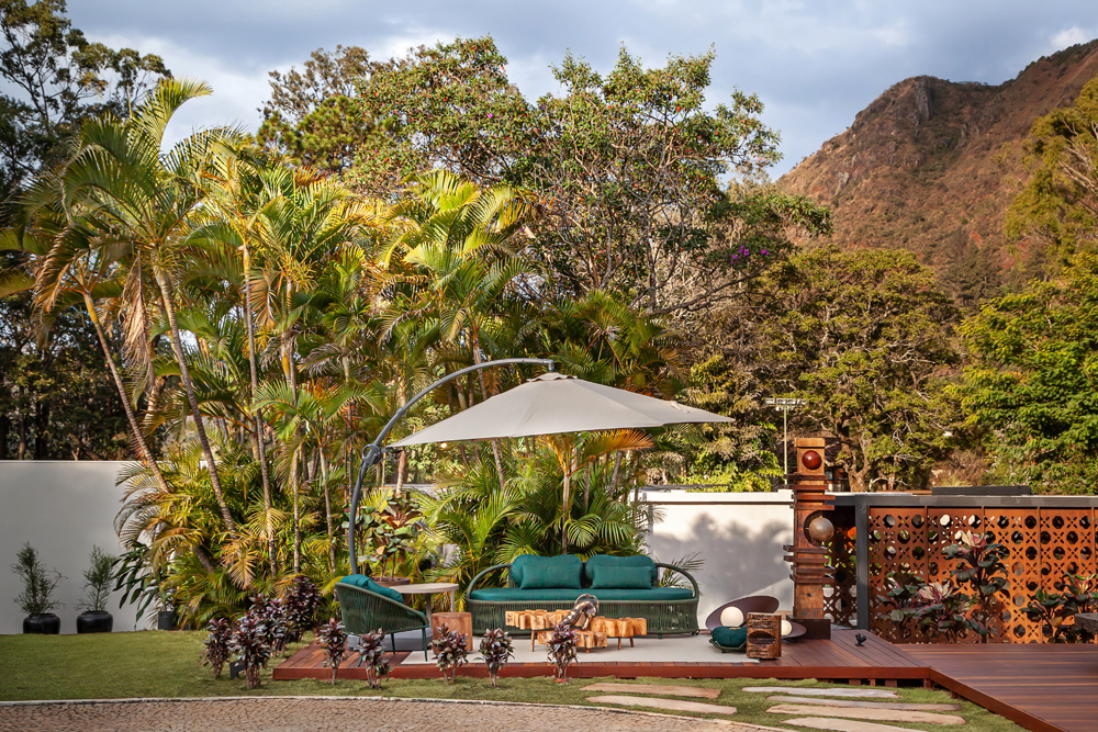 Patricia Abreu Pátio Palácio CASACOR Minas Gerais 2022 jardim paisagismo sofa madeira banco
