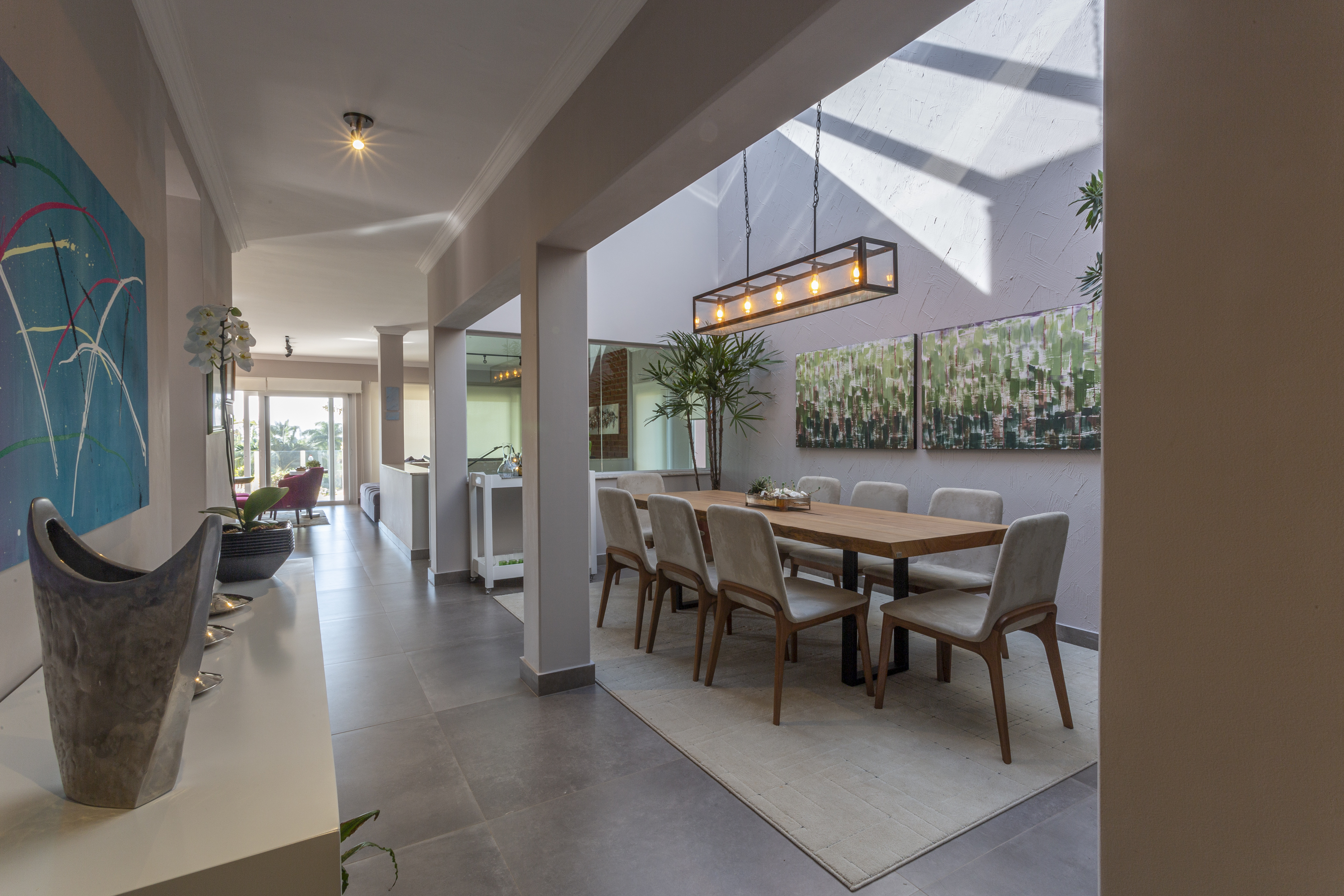 Paleta de cores neutras preenchem os 218 m² deste apê